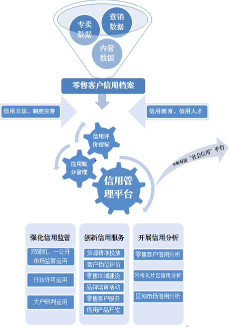 2.积极对接社会信用平台。此措施可分两步走:一是建立行业统一的联合惩戒机制。依托零售客户信用平台,建立零售客户信用信息库,构建行业统一的“联合惩戒一张网”,初步实现联合奖惩的全程可视化,形成“环环提醒、处处预警、逢办必查、核实必究”的卷烟零售客户联合奖惩大格局。二是积极对接全国信用信息共享平台。积极对接“信用中国”,以签订备忘录或者联合下文等方式,将烟草行业纳入社会信用体系;探索行业信用评价体系与全国信用信息共享平台等外部信用数据系统的的共享机制,实现多部门、跨地域、跨领域信息联享、信息联评、守信联奖、失信联惩的共享机制。